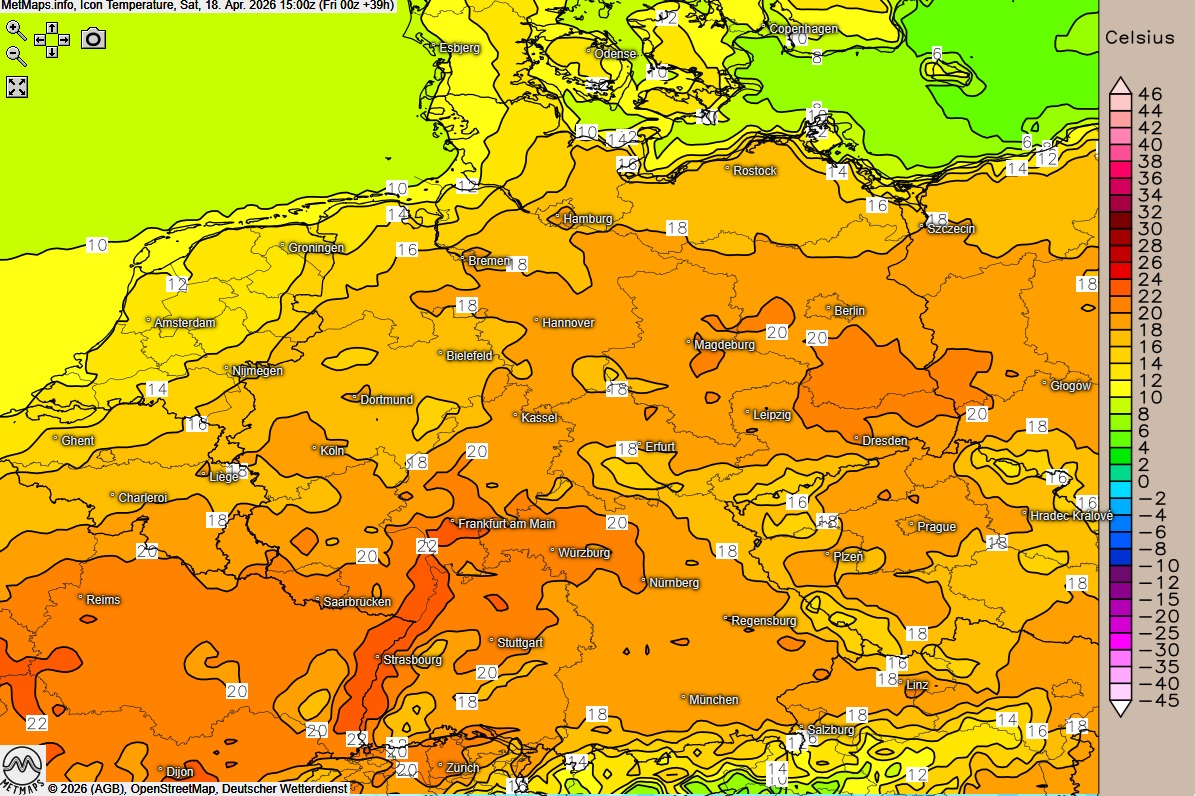 Die Temperaturen erreicht am Nachmittag Höchstwerte um 16 bis 24 Grad.