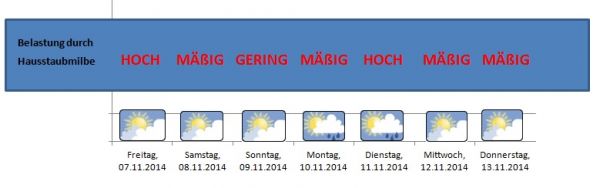 Mäßig bis hohe Belastungen durch Hausstaubmilben sind zu erwarten.