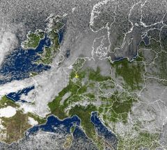 Dichtes Wolkenband über Nordwesteuropa