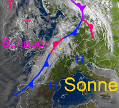 Wellende Kaltfront kommt nach Südosten voran