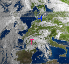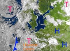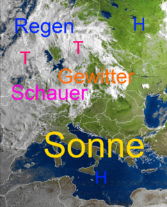 Wolkenbatzen mit kräftigem Regen und Sturm