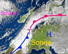 markante Luftmassengrenze mit Unwettergefahr