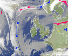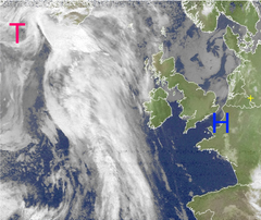 Wolken über der Nordsee und Norddeutschland trennen unterschiedlichen Luftmassen.