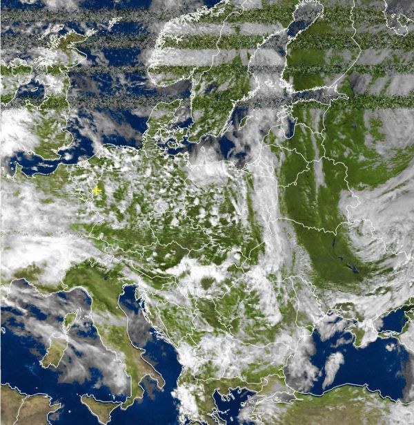 Auf dem Satellitenfoto von heute Nachmittag zeigen sich große Teile Europas unterschiedlich bzw. wechselnd bewölkt. Über Deutschland erkennen wir eine typische Cumulusbewölkung, hierbei handelt es sich um Haufenwolken, die am Nachmittag wiederholt für einzelne Schauer sorgt. Zwischen den Wolken kann sich jedoch auch immer wieder mal die Sonne zeigen.