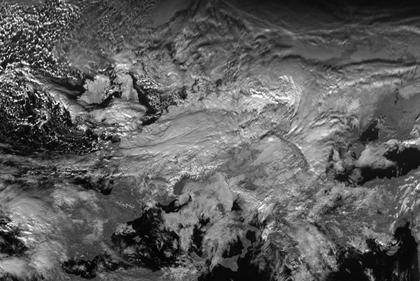 Verschiedene Kerne von Tief 'Petra' sorgen für meist dichte Wolken und Schnee oder Schneeregen in Europa: 'Petra II' befindet sich südwestlich von Irland, 'Petra III' befindet sich über dem Baltikum und 'Petra IV' befindet sich über dem Nordosten Frankreichs. Außerdem befindet bei Moskau mit seinem Kern Tief 'Quanna' und über Italien Tief 'Ronja'.