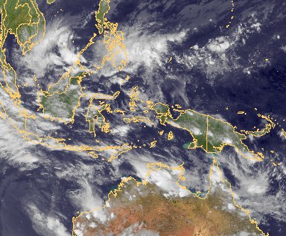 Über Indonesien und Neuguinea haben sich kräftige Schauer und Gewitter entwickelt. Diese entstehen dort in Zusammenhang mit der innetropischen Konvergenzzone.