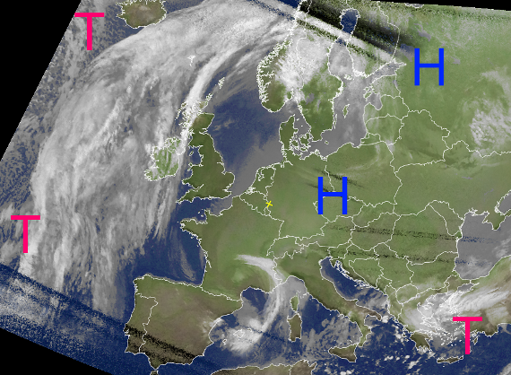 Der Wolkenbogen über Südfrankreich und dem westlichen Mittelmeer gehört zu dem kleinen unscheinbaren Höhentief, das gestern von der Nordsee nach Süden gewandert ist.