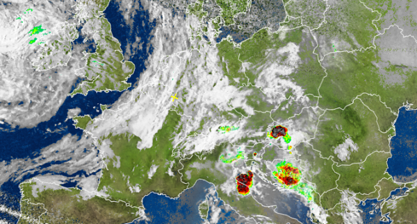 Dadurch kommt es von Großbritannien und Irland über Deutschland, die Alpen und den Balkan bis ans Baltikum immer wieder zu teils gewittrigen Schauern. Diese fallen insbesondere in schwül-warmer Luft auf dem Balkan auch kräftig bis unwetterartig aus.