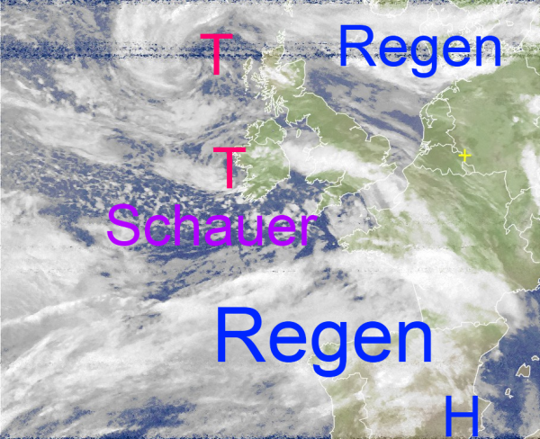 Über Frankreich haben sich bereits wieder neue kompakte Wolken formiert, die nach Deutschland ziehen und uns reichlich Regen bescheren. Im Südwesten können dabei zwischen 10 und 20 Liter / m² zusammen kommen.