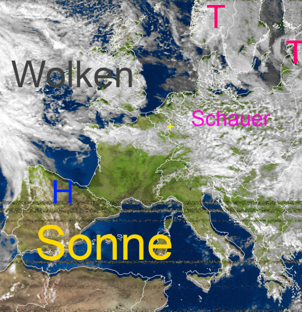 Vor allem über Nordostdeutschland und Polen erkennt man wabenförmige Wolkenstrukturen. Sie kennzeichnen Schauerzellen, die mit einem böigen Westwind übers Land getrieben werden. Im Südwesten der Republik gibt es dagegen einige Aufheiterungen und hier blieb es auch trocken.