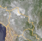 Auf dem heutigen Satellitenbild sind im Norden von Bolivien gebietsweise dichte und hochreichende Wolken zu erkennen. Hierbei treten zum Teil sehr kräftige Niederschläge und Gewitter auf.