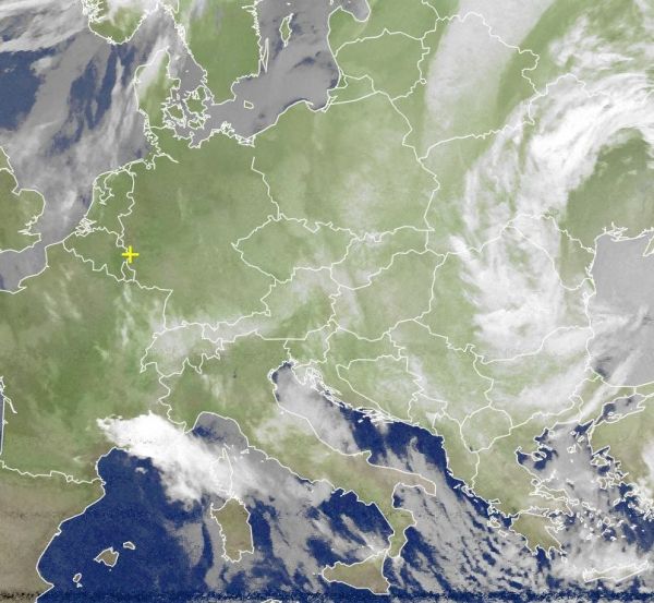 Nicht nur über Europa, sondern auch über Deutschland wird es heute die meiste Zeit über eine weiße bis graue Wolkendecke geben. Deutlich zu erkennen ist die kalte Luft, die in den Mittelmeerraum geflossen ist. Hier gab es Schnee und Regen und Gewitter.