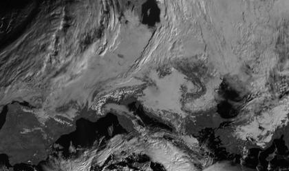 Die Front von Tief 'Klaus' mit Zentrum über Island überstreicht die Britischen Inseln. Hier herrscht windiges und regnerisches Wetter. In Mitteleuropa hält sich meist zäher Hochnebel und es fällt Schnee. Hochdruckeinfluss sorgt im Südwesten Europas für viel Sonne. Auch im Süden des Balkans scheint häufig die Sonne. Deutlich sind die wolkenarmen und noch verschneiten Alpen erkennbar. In Süditalien entwickeln sich teils kräftige Schauer.